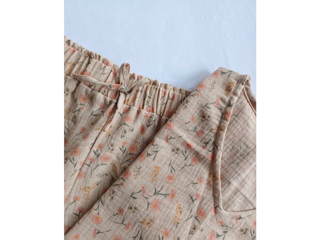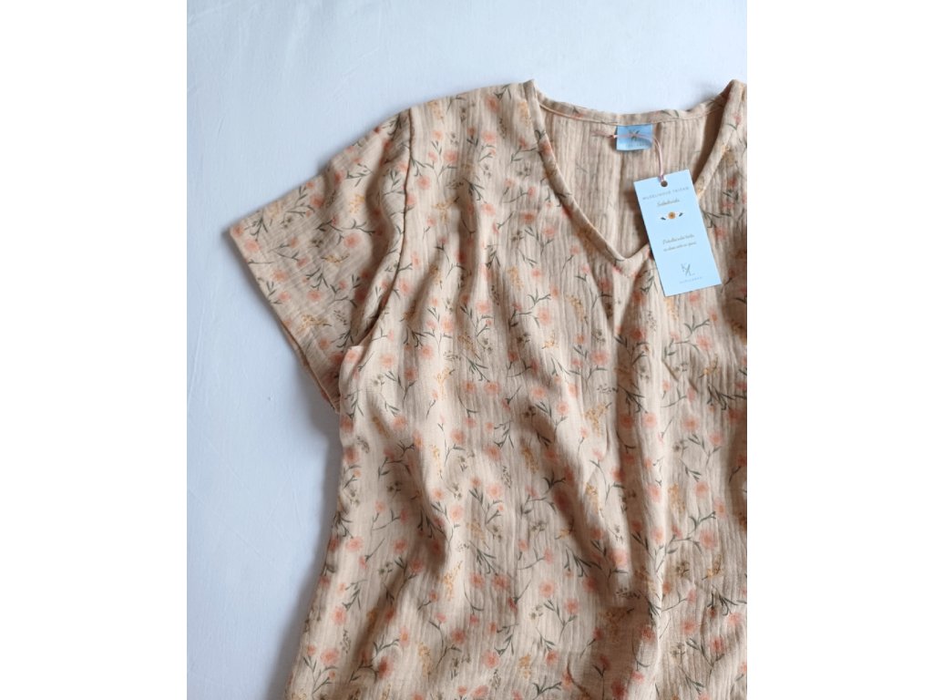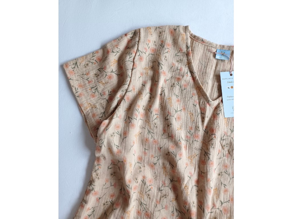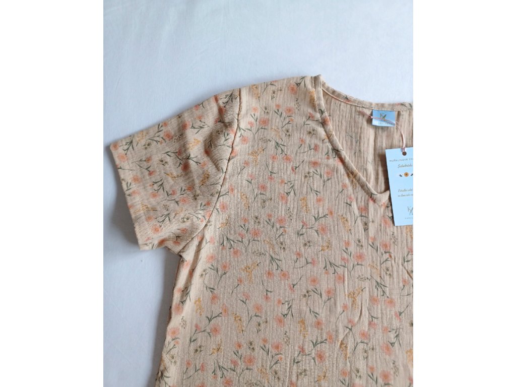 Z lehkého mušelínu se vzorem květin, který je pohodlný a nemusí se žehlit.