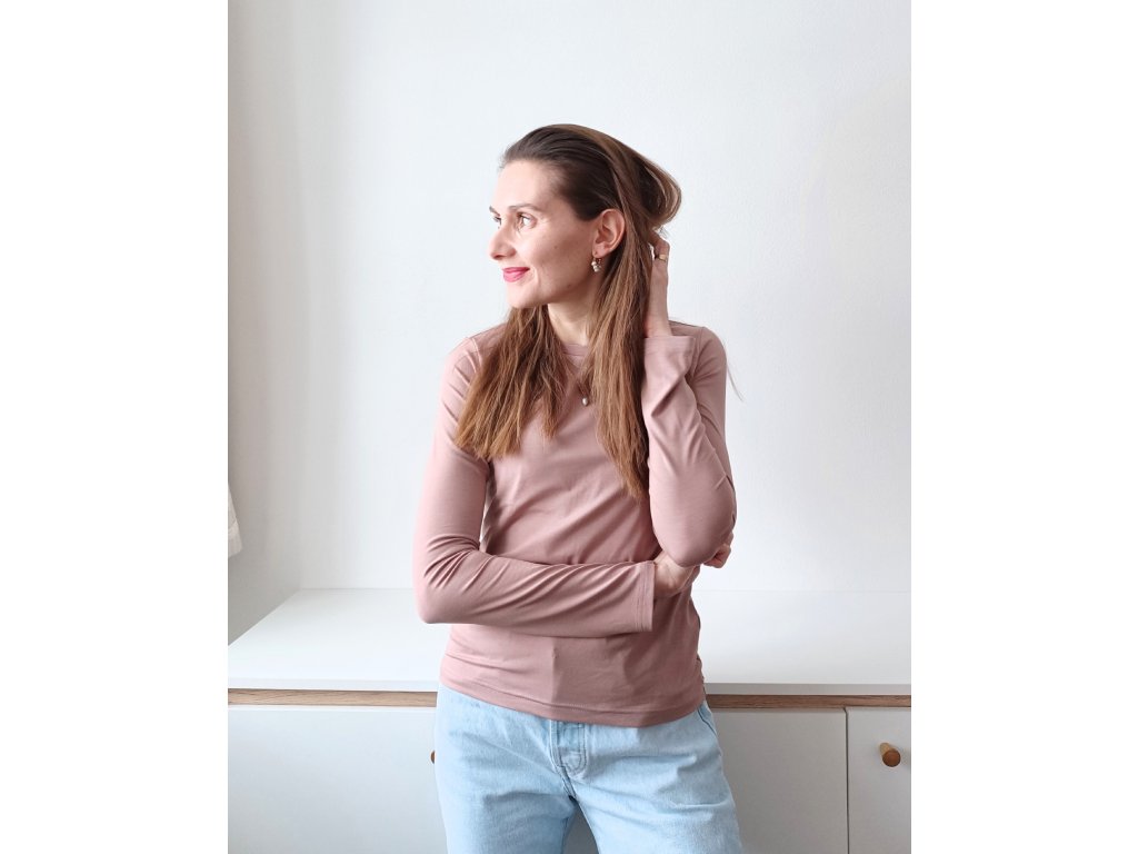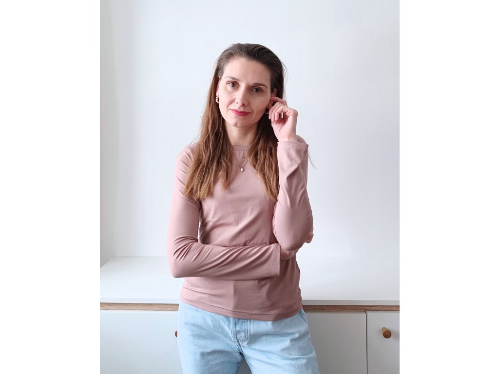 Dámské tričko z viskózy s dlouhým rukávem starorůžové