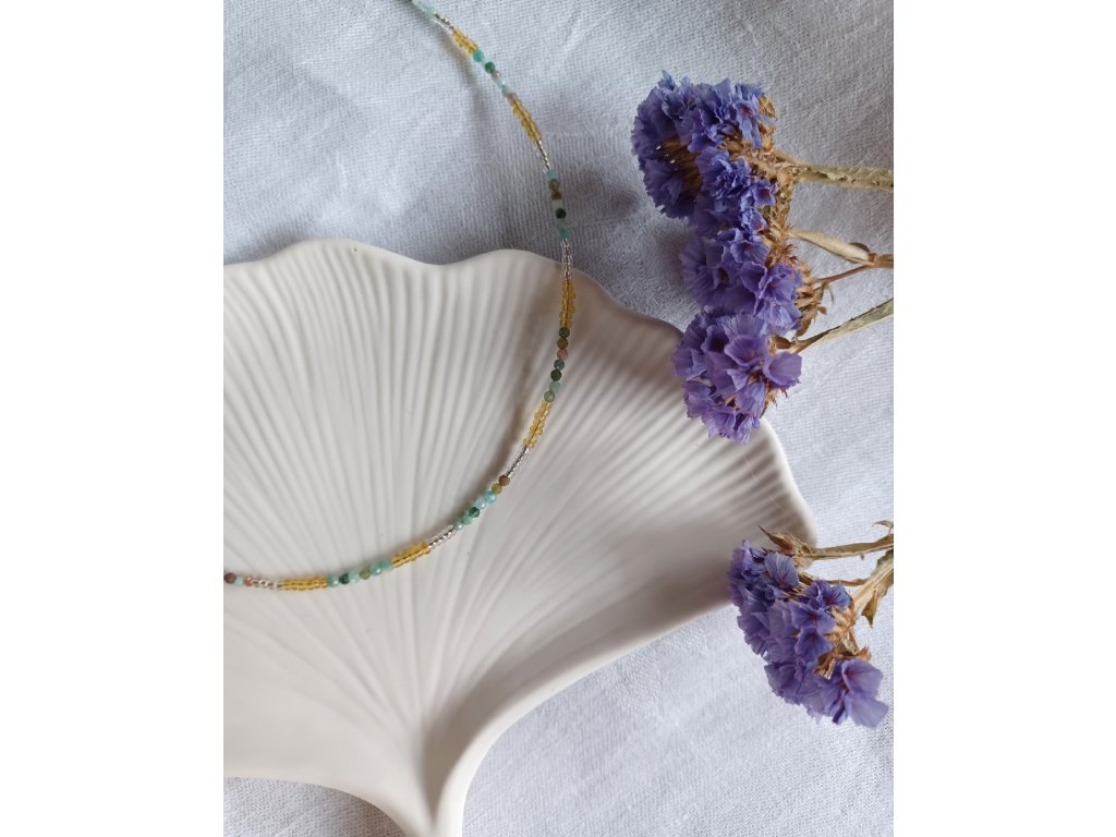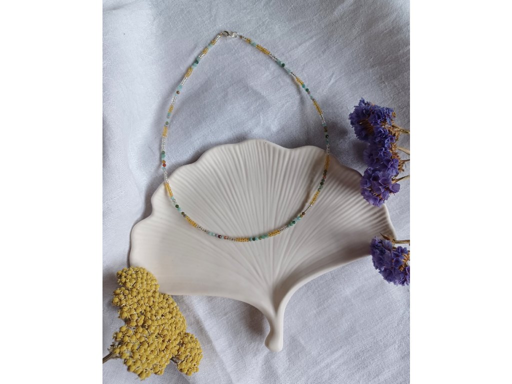 Náhrdelník z minerálů a českých skleněných korálků. Achát je považován za mocný ochranný kámen. Symbolizuje stabilitu a sebevědomí. Amazonit je kámen rovnováhy, harmonie a ochrany před negativní energií.